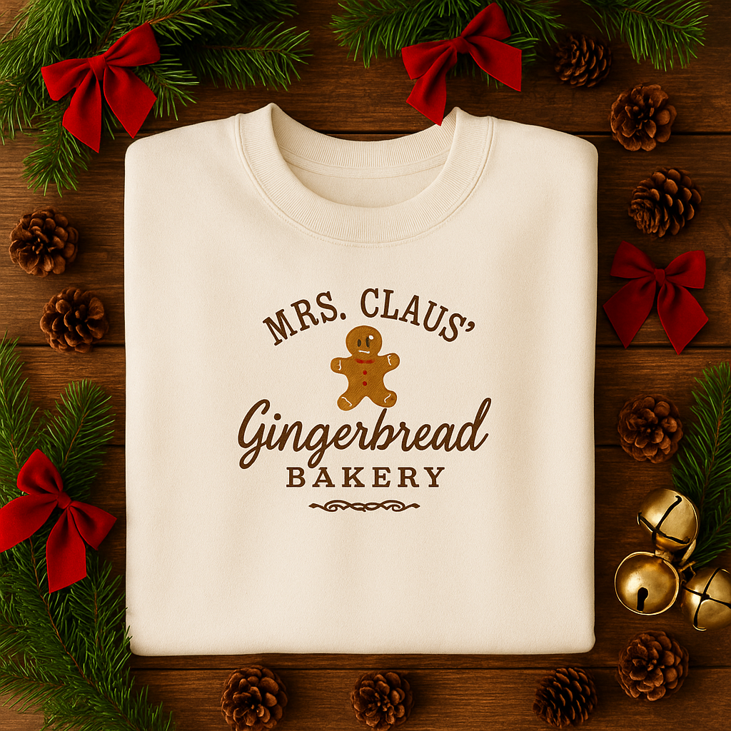Plonge dans une ambiance douce et gourmande avec notre sweatshirt brodé Mrs Claus’ Gingerbread Bakery. Orné d’un motif de petits biscuits pain d’épice et d’une inscription inspirée des boulangeries du Pôle Nord, ce sweat capture toute la chaleur et la nostalgie de Noël.